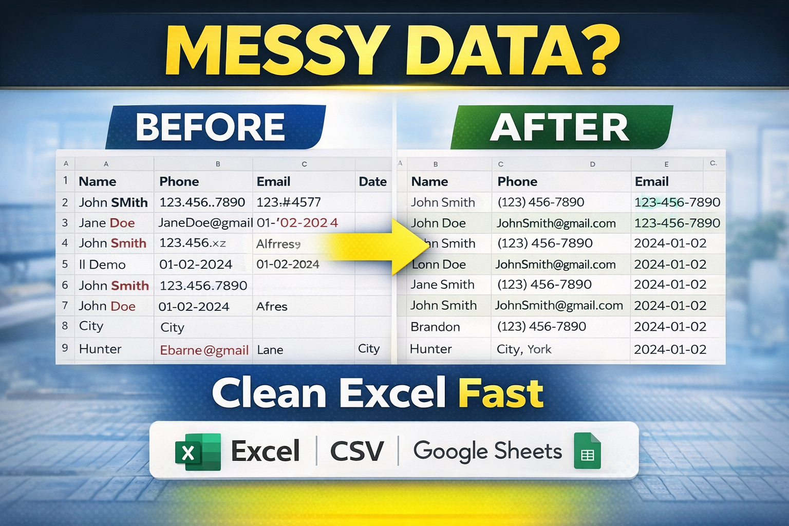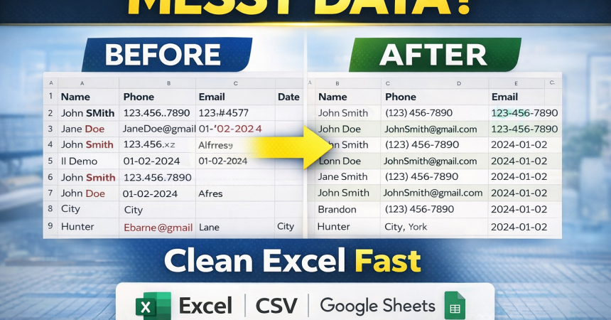 I will clean and organize your data professionally using Python and Excel tools.