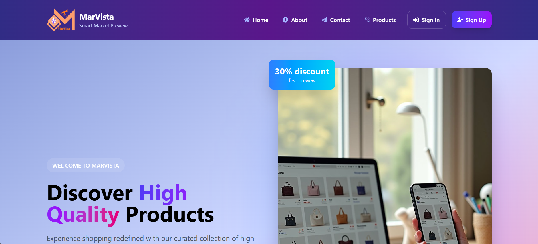 MarVista is a web application for previewing market solving problem of crowd market, saving time, energy and cost. You post your product there and customers simply visit and get the knowledge of market. It suits the customers plan.
